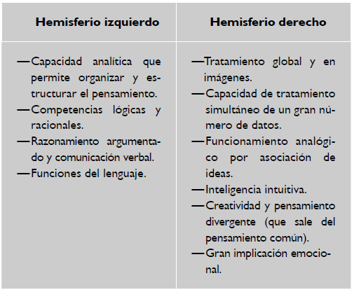 La activación del hemisferio derecho corresponde a un pensamiento en imágenes, esto es, visual y espacial. Pasar por el lenguaje, por las palabras, por la estructura lineal de la lengua, cuyo centro está situado en el hemisferio izquierdo, requiere una concentración y un esfuerzo adicional para el superdotado. Frente a una situación dada, frente a un problema que resolver, a un obstáculo que superar, pero también en todos los multipensamientos cotidianos, las zonas del tratamiento en imágenes son las que se movilizan en primer lugar. El superdotado ve imágenes antes de transformarlas en palabras, lo cual implica una doble dificultad: