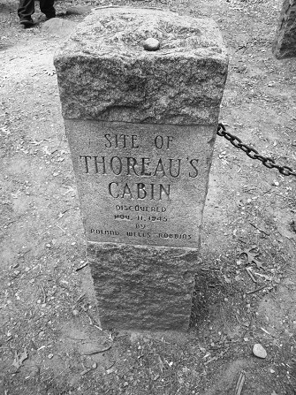 De aquella casita hay una réplica exacta (cama, chimenea, escritorio, tres sillas, todo lo cual le costó 28 dólares, como apunta en el primer capítulo de Walden), a la entrada del área de Walden Pond, donde asimismo se erige una estatua en su honor y se encuentra el «Site of Thoreau’s Cabin», como reza una inscripción, junto al cordón hecho de cadenas y piedras con el que se indica la ubicación en la que estuvo la casa original. Ciertamente, tras los veintiséis meses que pasó allí en busca de llegar a captar la esencia de la vida, resurgirá un Thoreau aún si cabe más seguro de los principios morales que había ido atesorando desde muy joven, asentados en la simplicidad y la autoconfianza, en la bondad como la mejor inversión, en el hecho de eliminar las necesidades autoimpuestas y vivir libre, cual «hijo de la niebla».2