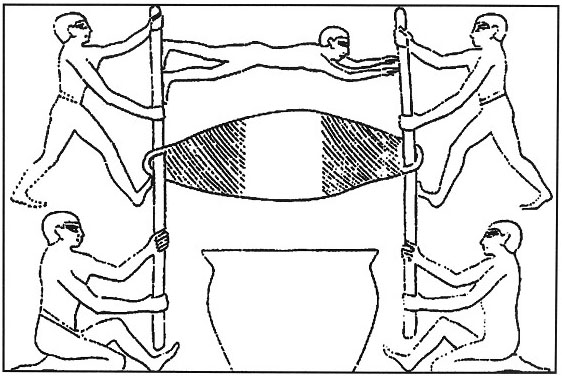 Prensadores del antiguo Egipto. Reconstrucción de una imagen procedente de la necrópolis de Saqqara