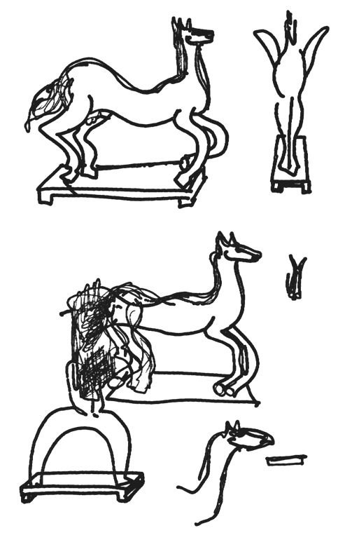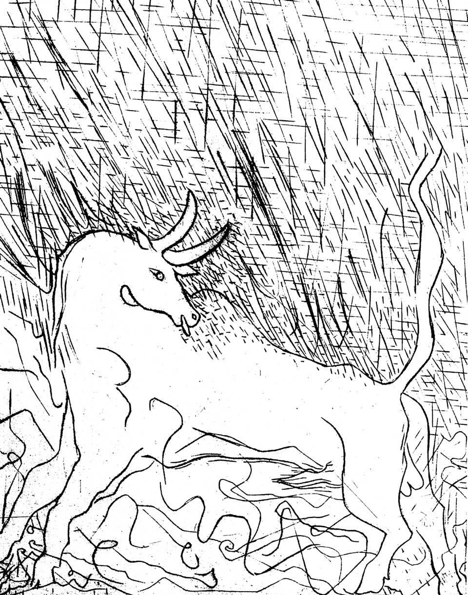 Trabajé mucho para Chucho, de día y de noche y a todas horas. Me volví su esclavo. Sobre unas pequeñas láminas, Chucho me ordenaba que pintara la vida de San Antonio tres veces, en distintos momentos de su vida. «Es un tríptico», me decía. Pinté infinidad de historias de santos que Chucho vendía. «¡Son del siglo pasado!», le decía al comprador. Por lo tanto, éramos unos sinvergüenzas. Me enseñó a hacer otras «antigüedades» sobre hojalata, pero principalmente quiso que pintara sobre papel de china. En un dos por tres él garabateaba un Cristo, un gallo, un caballito, un jarrón con flores, un perico, un esqueleto completo.