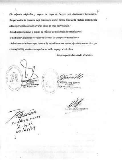 Embanderado con el reclamo de las empresas constructoras, desde la comisión revisora de cuentas del Congreso, Morales impulsó las auditorías sobre las obras de la Túpac Amaru, por medio de dos auditores radicales: Leandro Despouy, que presidía el cuerpo, y Alejandro Nieva, hijo del caudillo radical que ungió a Morales como sucesor. Morales afirmaba que la Túpac no rendía cuentas de los fondos que recibía. A su pedido, la AGN envió dos auditores «y los sacaron corriendo», igual que a los de la provincia y los del municipio, dijo. Pero Despouy relativizó esa información bajo juramento: «Al principio la organización no quería ser auditada, pero después accedieron, cuando les explicaron qué información buscaban». Las actas levantadas el 7 de septiembre de 2009 por los auditores de la AGN, Alberto Garré y Elvira Muñoz, tampoco avalan los dichos de Morales. Un acta dice que a pedido de los municipios de Santa Clara y El Piquete las obras fueron construidas por desocupados de la zona que no tenían planes sociales, con 32 operarios en lugar de 16, para dar trabajo «a mayor cantidad de gente»; constata que la factura corresponde al personal afectado a la obra, que todos han sido asegurados; adjunta las facturas de compra de materiales e informa que la obra está terminada en un 100% «no obstante quedar un saldo impago».